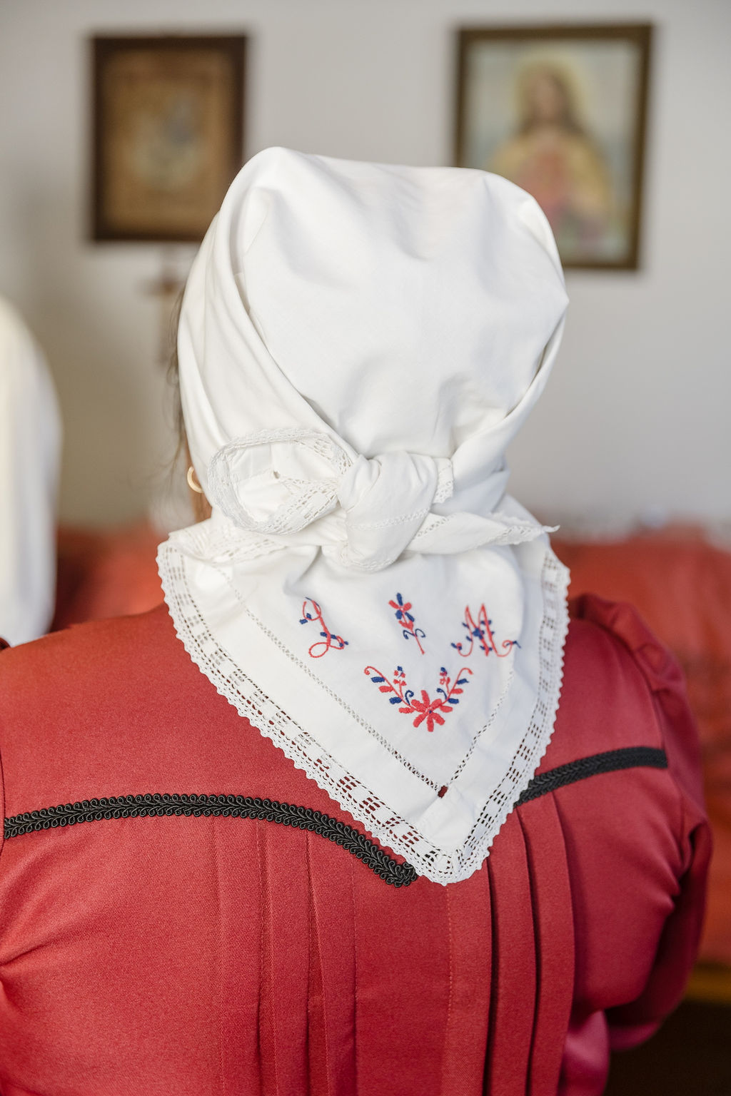 Befejeződött "munkás-ruha" projektünk. Régóta dolgoztunk rajta, gyűjtöttünk eredeti, régi darabokat, vizsgáltuk a szabást, megvásároltuk a megfelelő méterárut, elkészíttettük a férfi ruhákat, inget és nadrágot, megvettük a kötényeket (kéket és fehéret), felajánlásból megkötötték a kötött sapkákat. Női felsőszoknyákat és kötényeket vásároltunk népviselet gyűjtőktől, illetve az eredeti mintájára elkészíttettük a női ingeket, mellényeket és a "pacskedliket". Jelen pályázat a férfi ingeket és nadrágokat, illetve a női ingeket, valamint méterárut fedezte.
